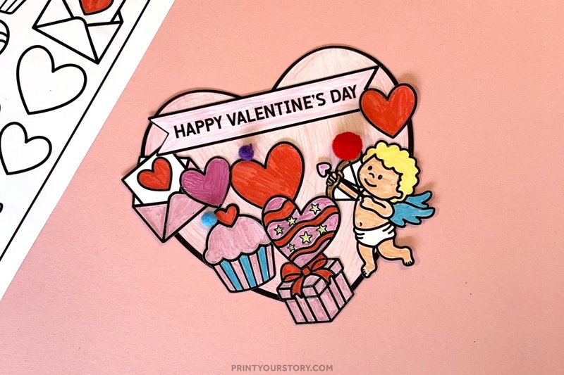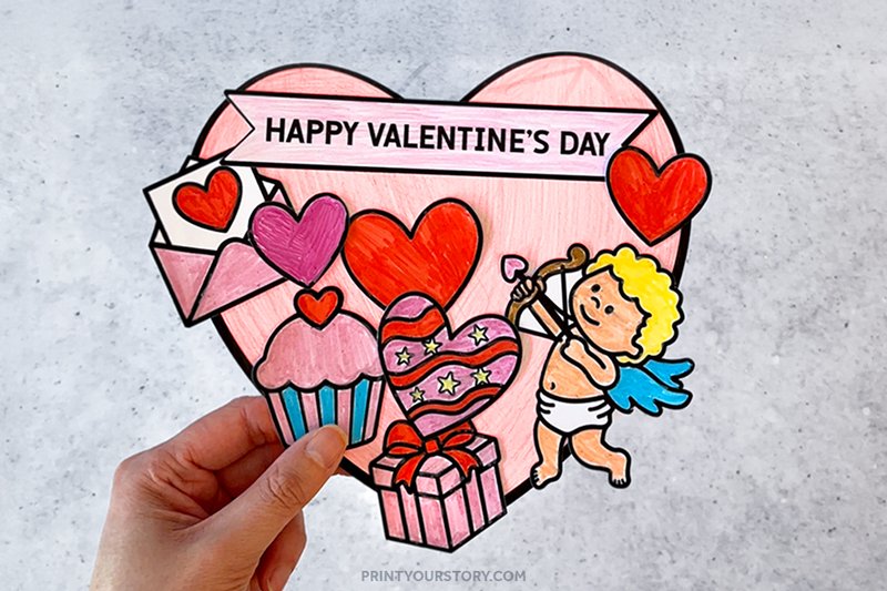 Valentine’s Day Coloring Card Craft - Easy Cut & Paste Printable Activity for Kids